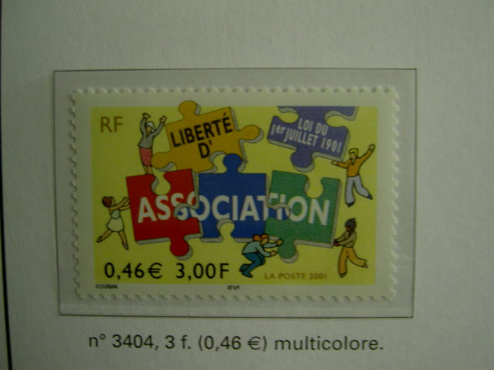 📌 Timbre : 2001 LOI DU 1er JUILLET LIBERTÉ D'ASSOCIATION - YT n°3404 année 2001