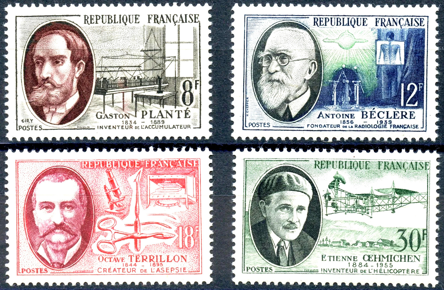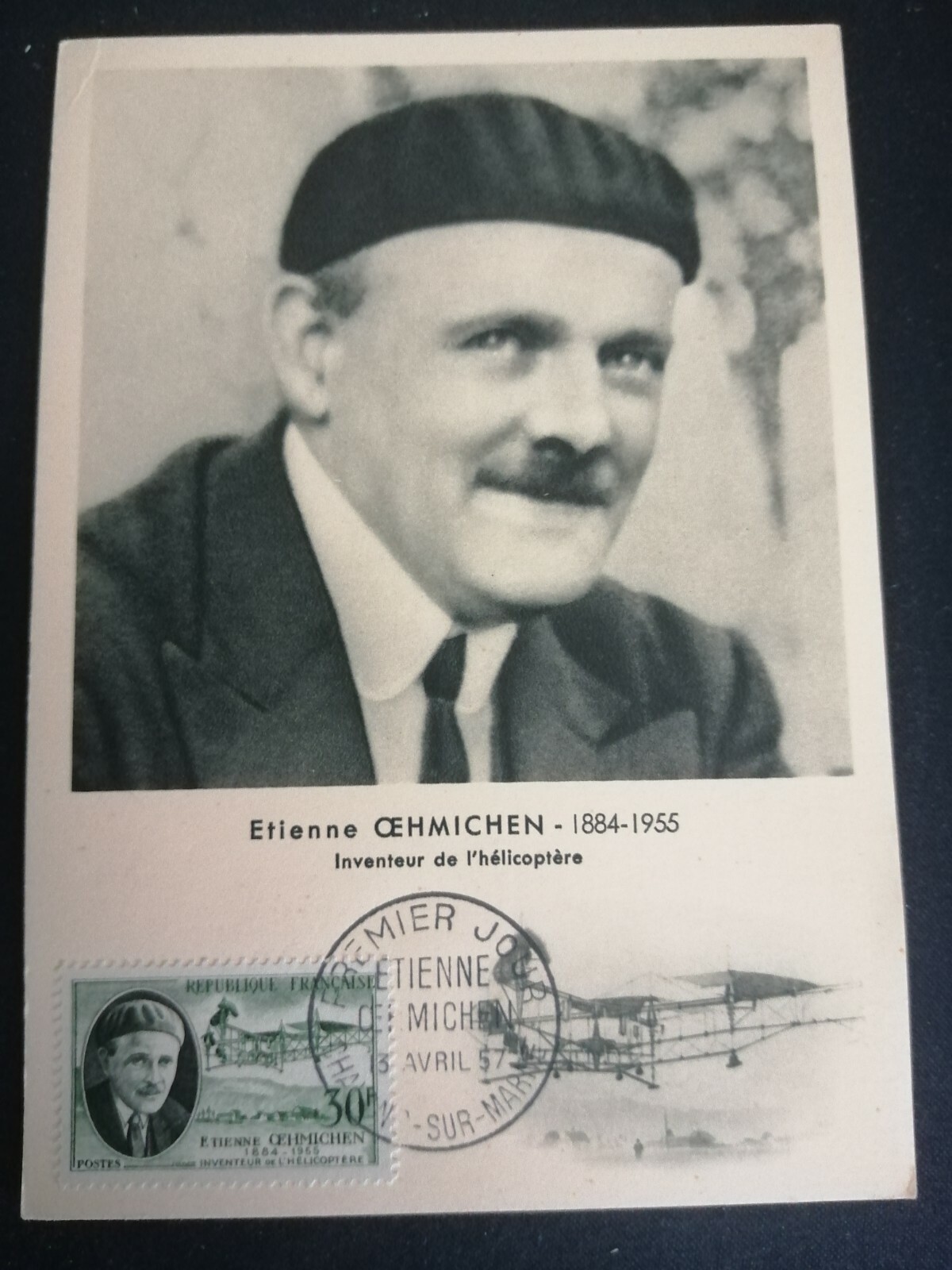 📌 Timbre : ETIENNE ŒHMICHEN 1884-1955 INVENTEUR DE L’HÉLICOPTÈRE - YT n° 1098 année 1957