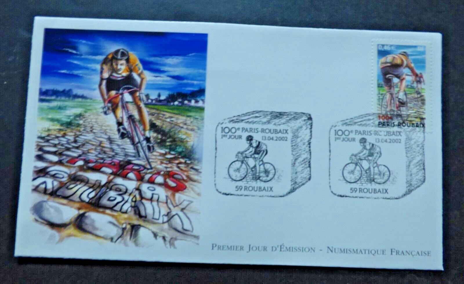 FRANCE 2002 FDC 1° jour TIMBRE 3481 CYCLISME PARIS-ROUBAIX CACHET COM
