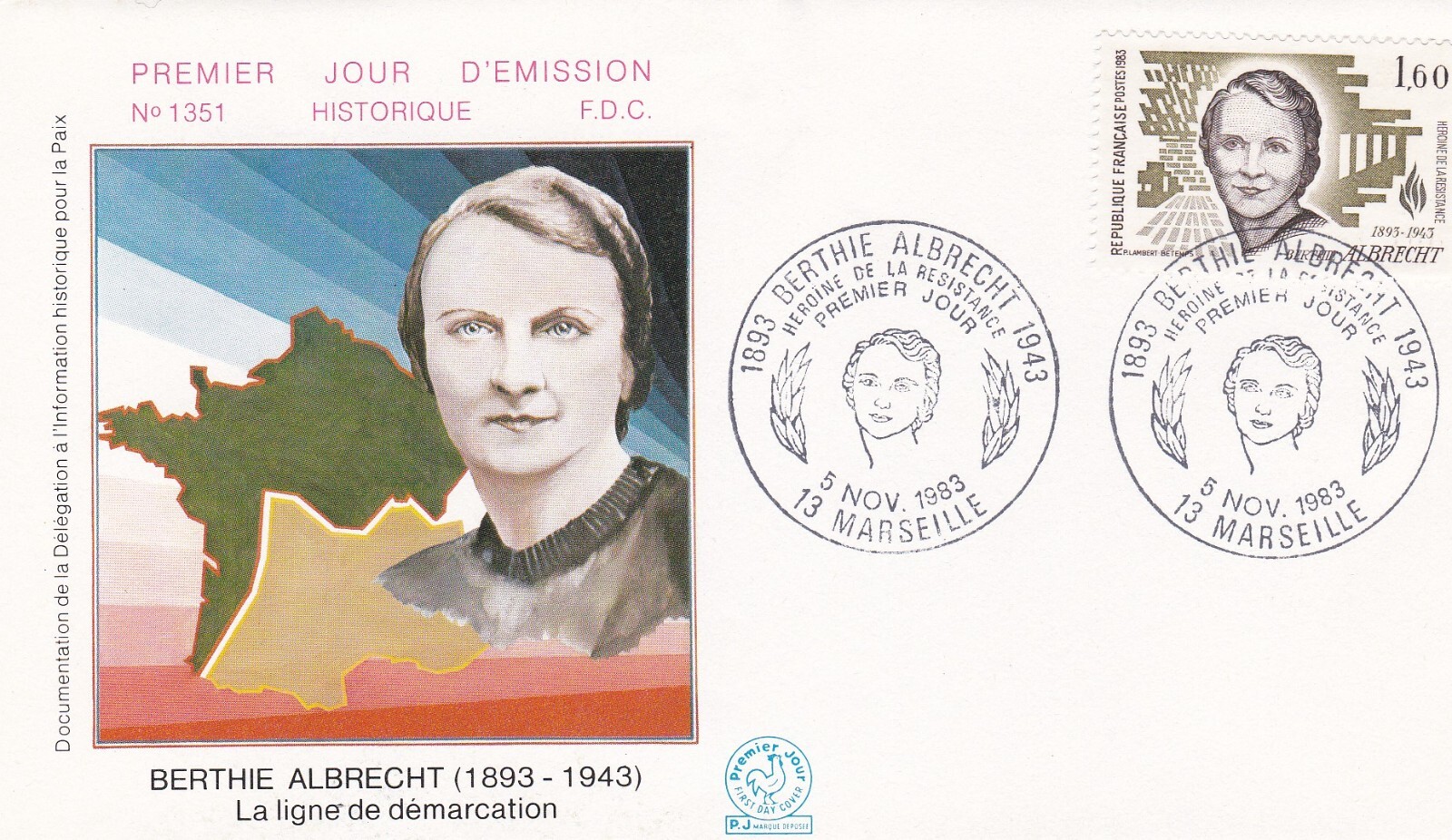 Description du Timbre : Berthie Albrecht (1893-1943), Héroïne de la Résistance, né à Marseille.