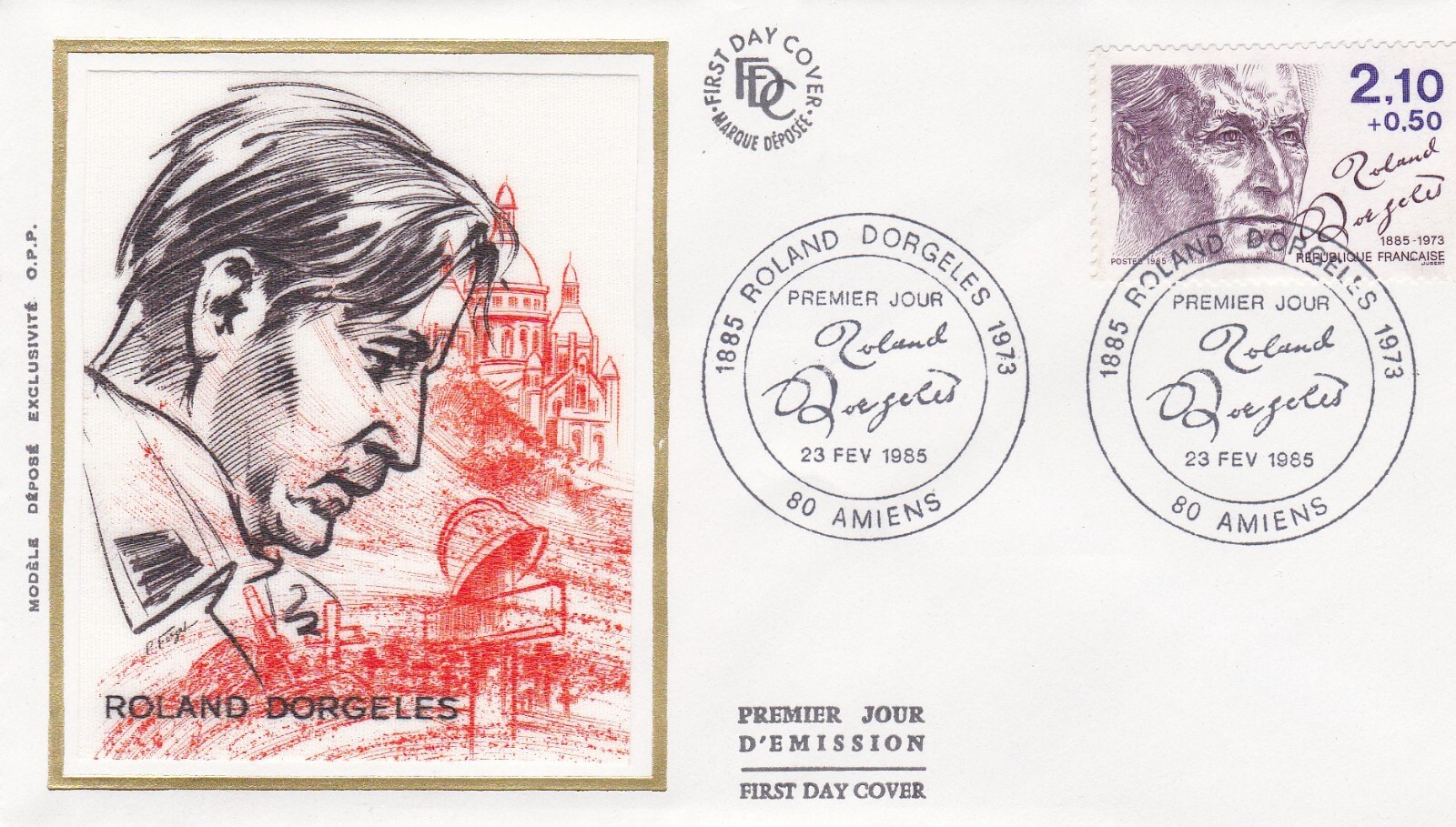 Description du Timbre : Roland Dorgelès (1885-1973), journaliste et écrivain, né à Amiens.