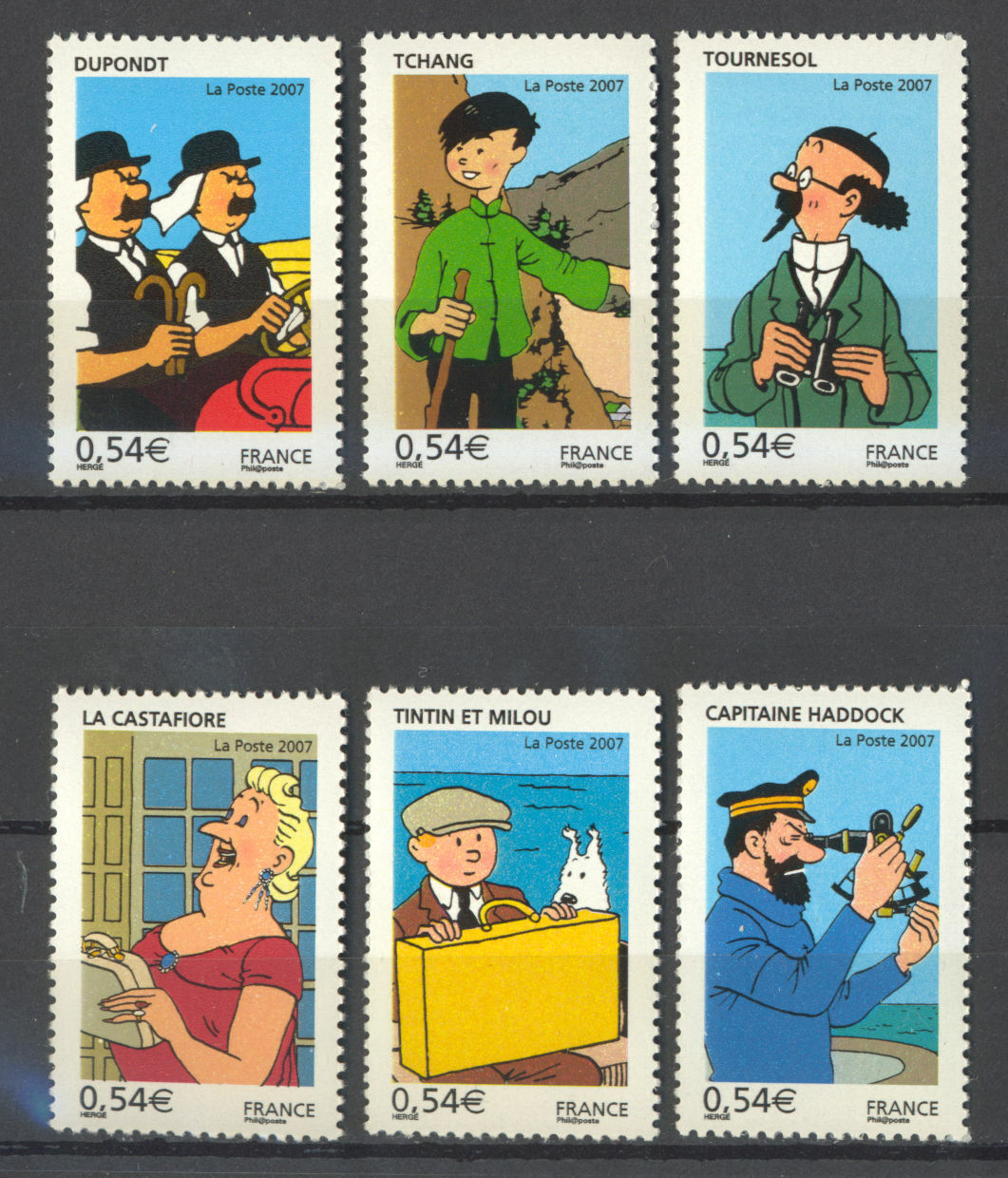 Description du Timbre : Les voyages de Tintin : (Tintin et Milou)