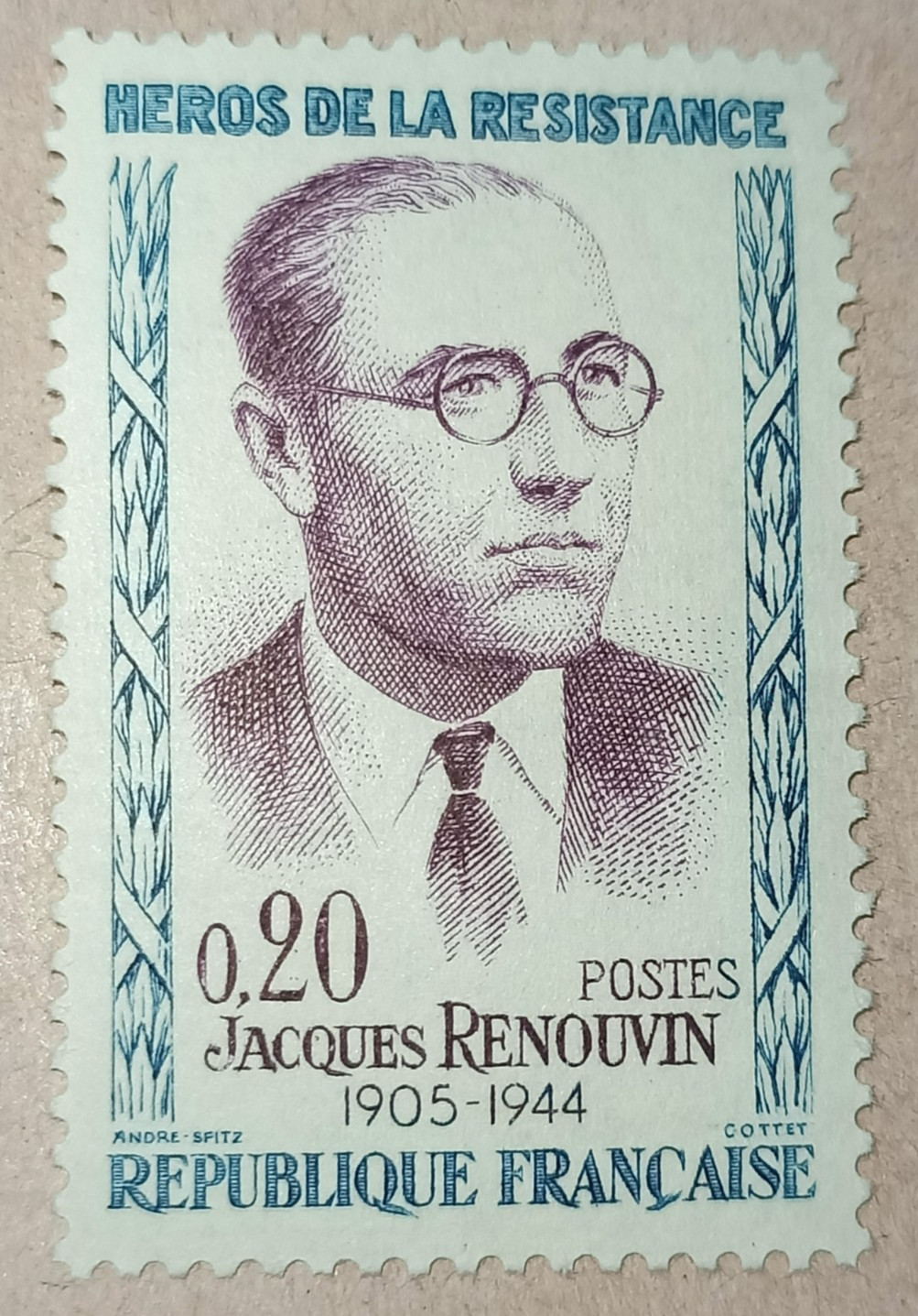 📌 Timbre : Héros de la Résistance. Jacques Renouvin (1905-1944) - YT n° 1288 - année 1961
