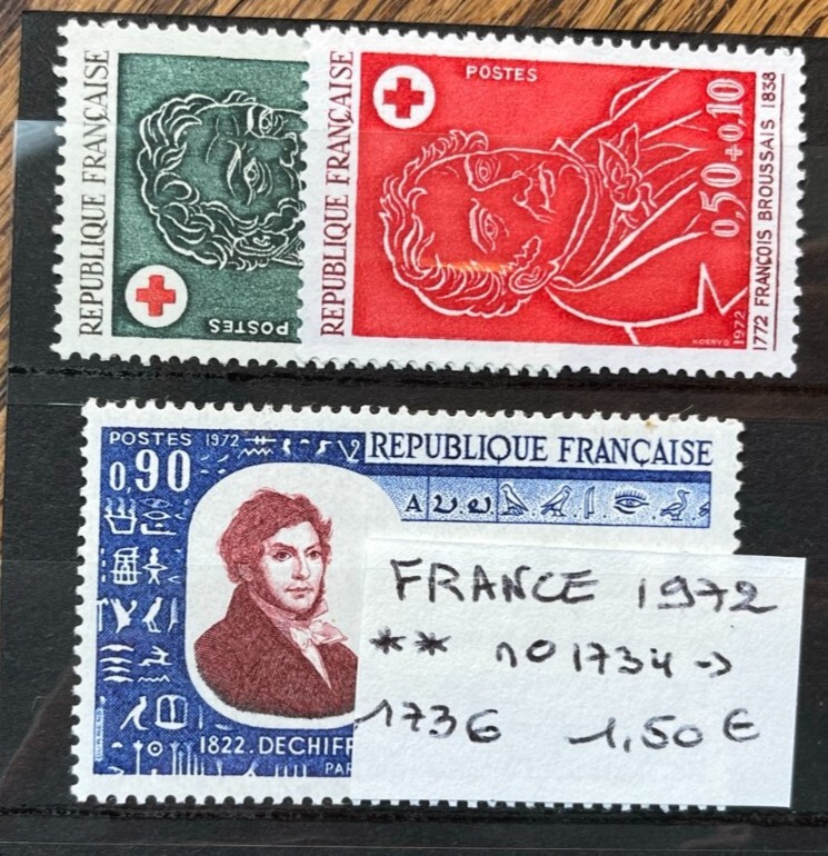 📌 Timbre : JEAN-FRANÇOIS CHAMPOLLION 1822. DÉCHIFFREMENT DES HIÉROGLYPHES Ton édifice est durable comme le ciel - YT n° 1734 année 1972