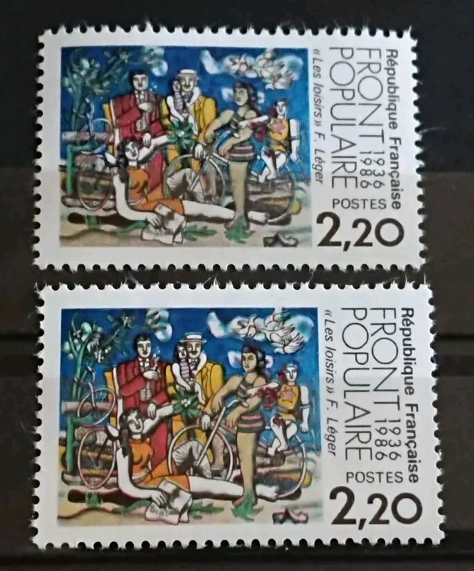 📌 Timbre : Cinquantenaire du front populaire (1936-1986), illustré par les loisirs de Fernand Léger (1881-1955) - YT n° 2394 - année 1986