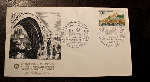 ENVELOPPE 1° JOUR 1968 congres societes philatéliques Beziers N°156