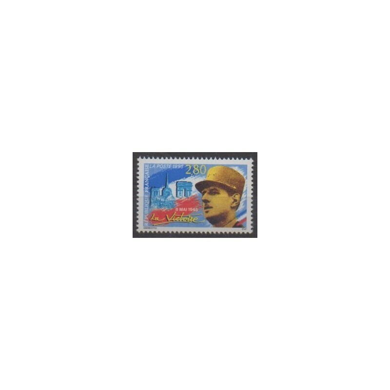 📌 Timbre : Général de Gaulle - 8 MAI 1945 La Victoire - YT n° 2944 - année 1995