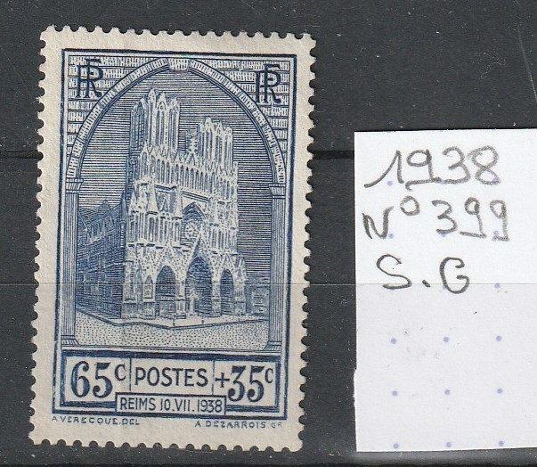399 (1938) Cathédrale de Reims 65c+35c N* (cote 10e) (4996)