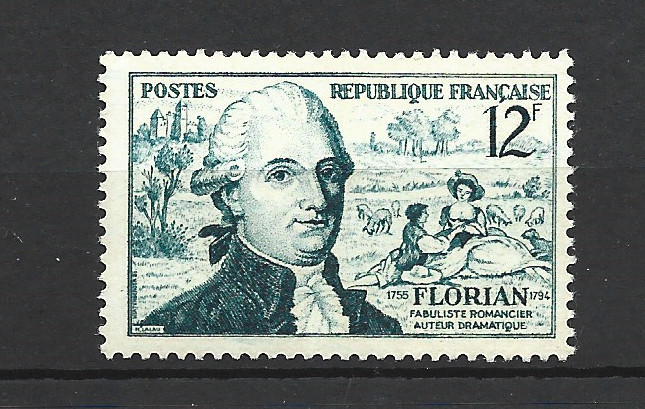 📌 Timbre : Jean-Pierre Claris de Florian (1755-1794) - YT n° 1021 - année 1955