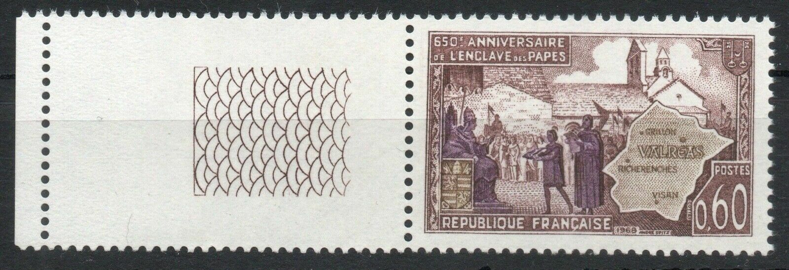 Timbre France (Yt 1562 ) 1968 650e Anniversaire De L'Enclave