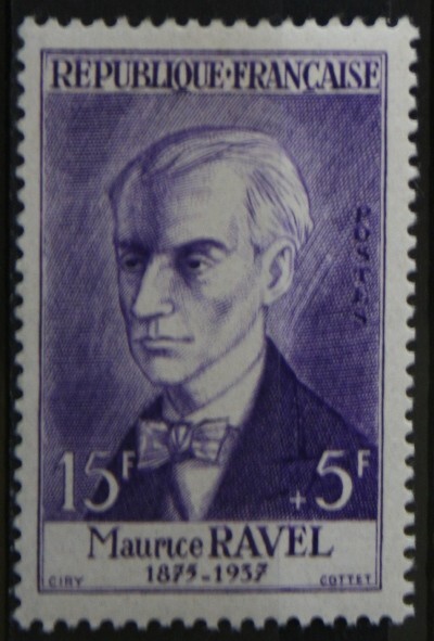 Description du Timbre : Maurice Ravel (1875-1937), compositeur, né à Ciboure.