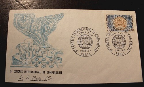 Timbre gravé - FDC France CONGRÈS INTERNAT. COMPTABILITÉ 1967, Sign