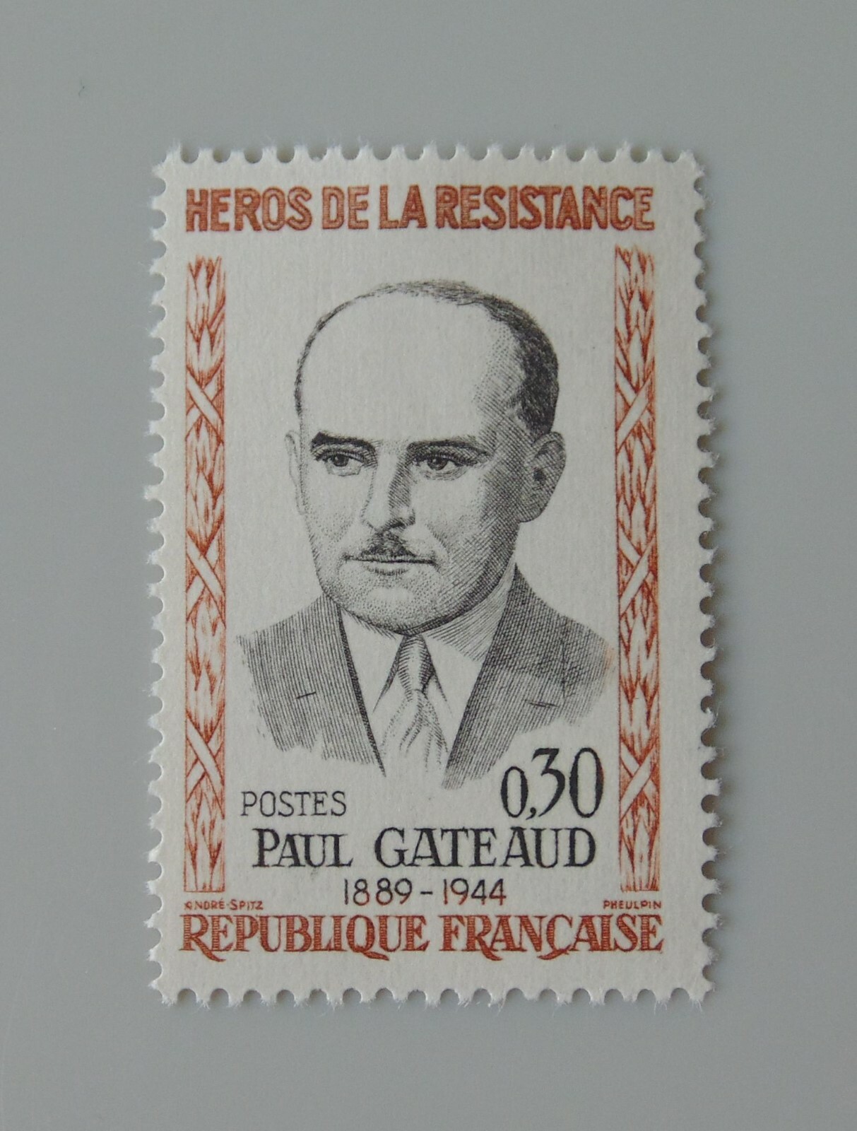 📌 Timbre : HÉROS DE LA RÉSISTANCE PAUL GATEAUD 1889-1944 - YT n° 1290