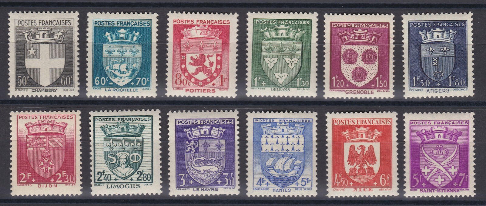 France 1942 MNH Mi 564-575 Sc B135-B146 Armoiries de diverses villes L