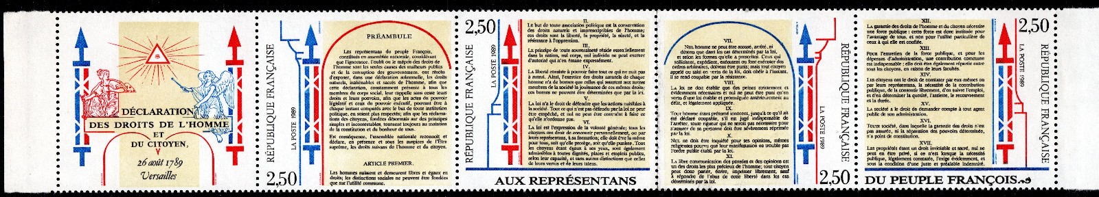 Timbres de FRANCE de 1989 Bande B2605A Déclaration des droits de l'h