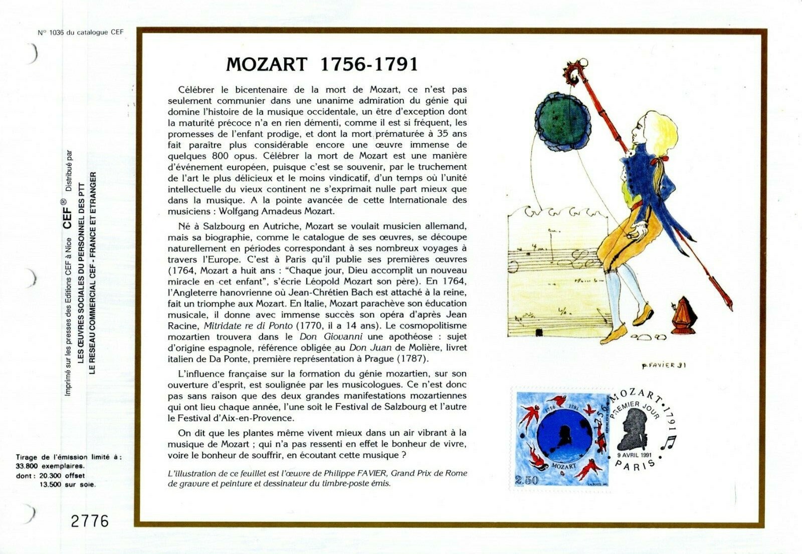 2695++ FEUILLET CEF 1er JOUR 1991 MOZART