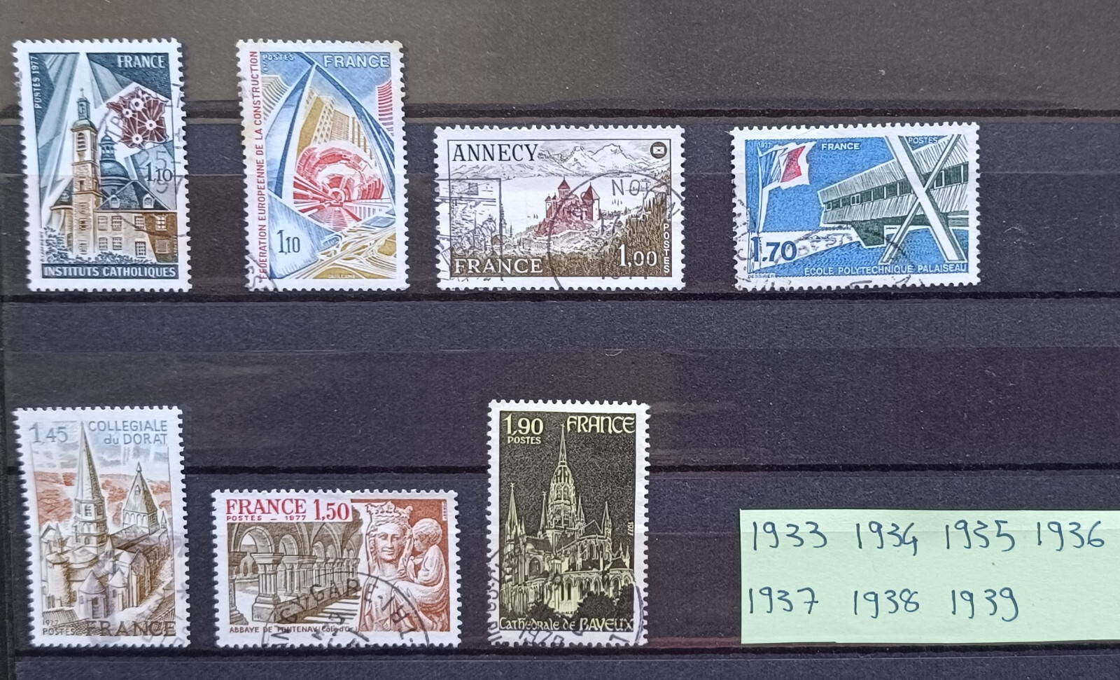 lot timbres france oblitérés 1977 n° 1933 1934 1935 1936 1937 1938