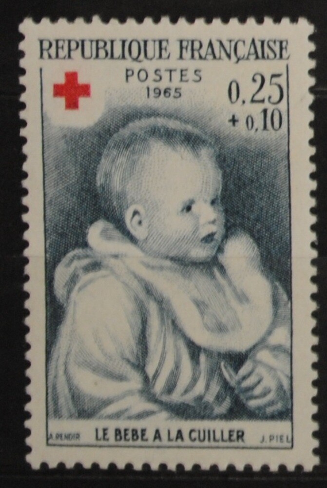 FRANCE 1965 CROIX ROUGE TABLEAU LE BEBE A LA CUILLERE YVERT