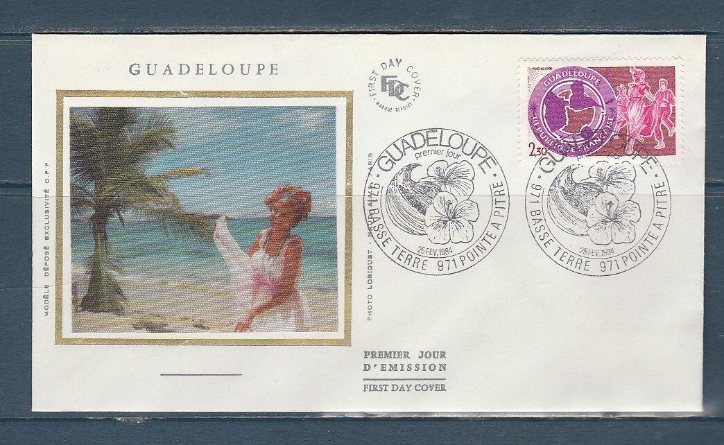enveloppe 1er jour Guadeloupe 971 Basse Terre et Pointe a Pitre