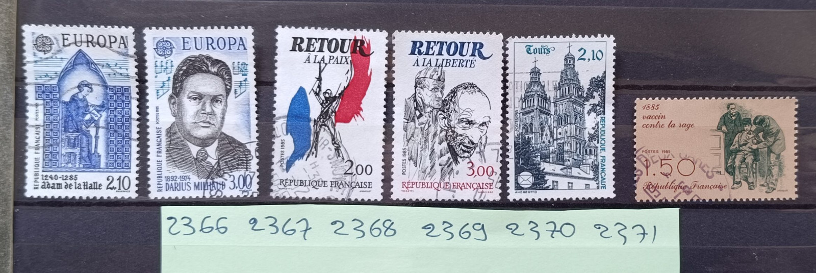 lot timbres france oblitérés 1985 n° 2366 2367 2368 2369 2370 237