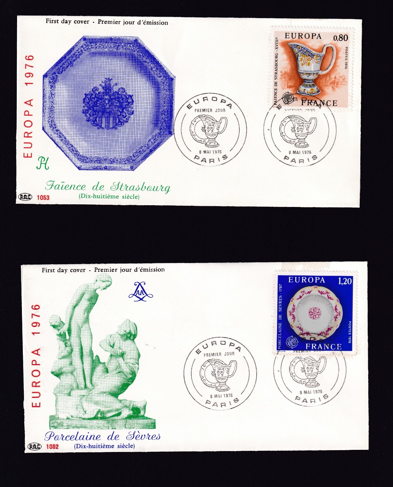 LOT 2 TIMBRES EUROPA 1976 FAIENCE STRASBOURG ET PORCELAINE D