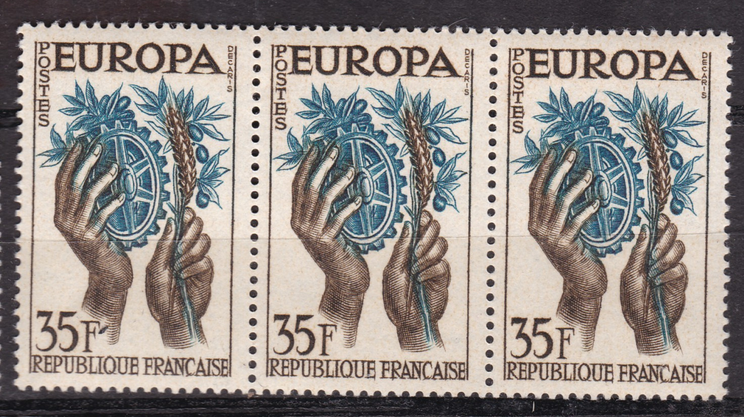 TIMBRE 1957 FRANCE EUROPA N° 1122 BANDE DE 3-N**. TB-VOIR SCAN-