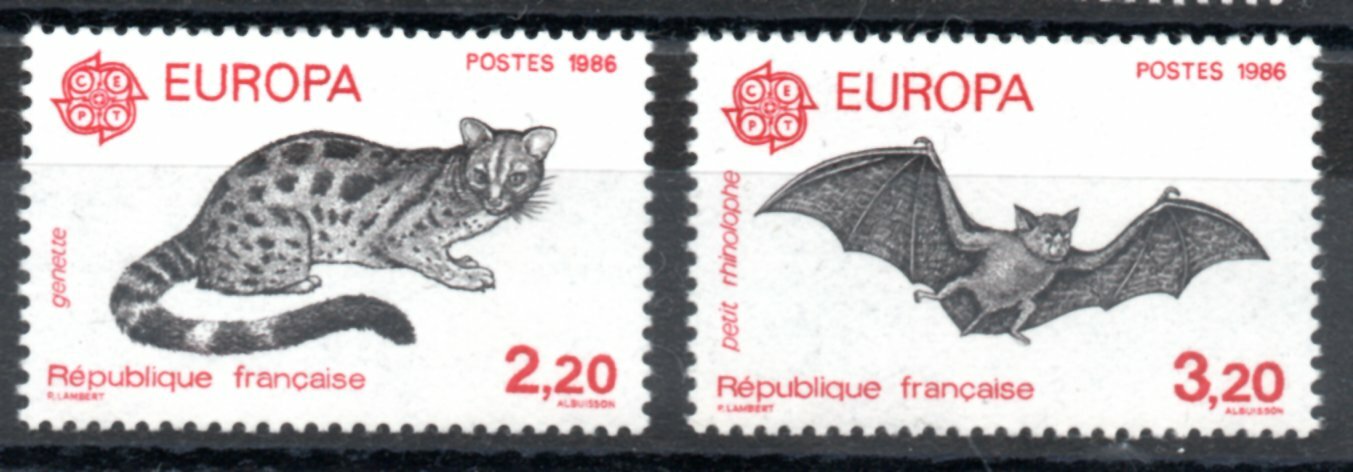 Paire Timbre de 1986 - EUROPA C.E.P.T. - Genette / Petit rhinolophe 2