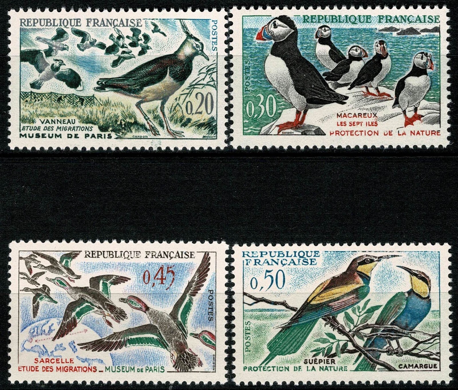 oiseaux. vanneaux. macareux. sarcelles. guêpiers. 1960