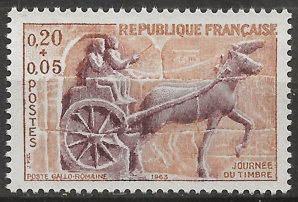 FRANCE 1963 JOURNEE DU TIMBRE CHAR DE POSTE GALLO-ROMAIN YVE