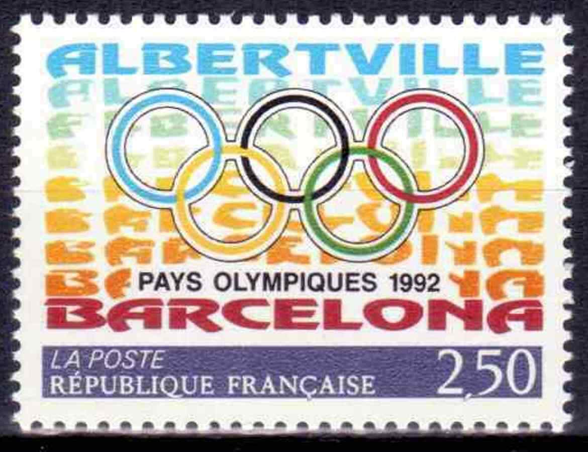 1 Timbre France 1992 Neuf- Anneaux olympiques sur noms "
