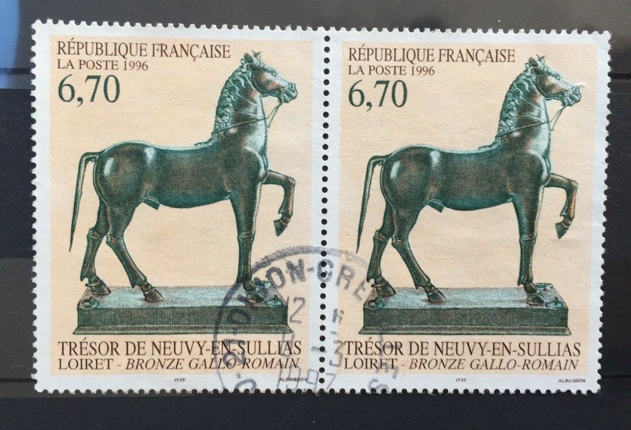 Timbres France 1996 paire YT 3014 oblitérés. Cheval