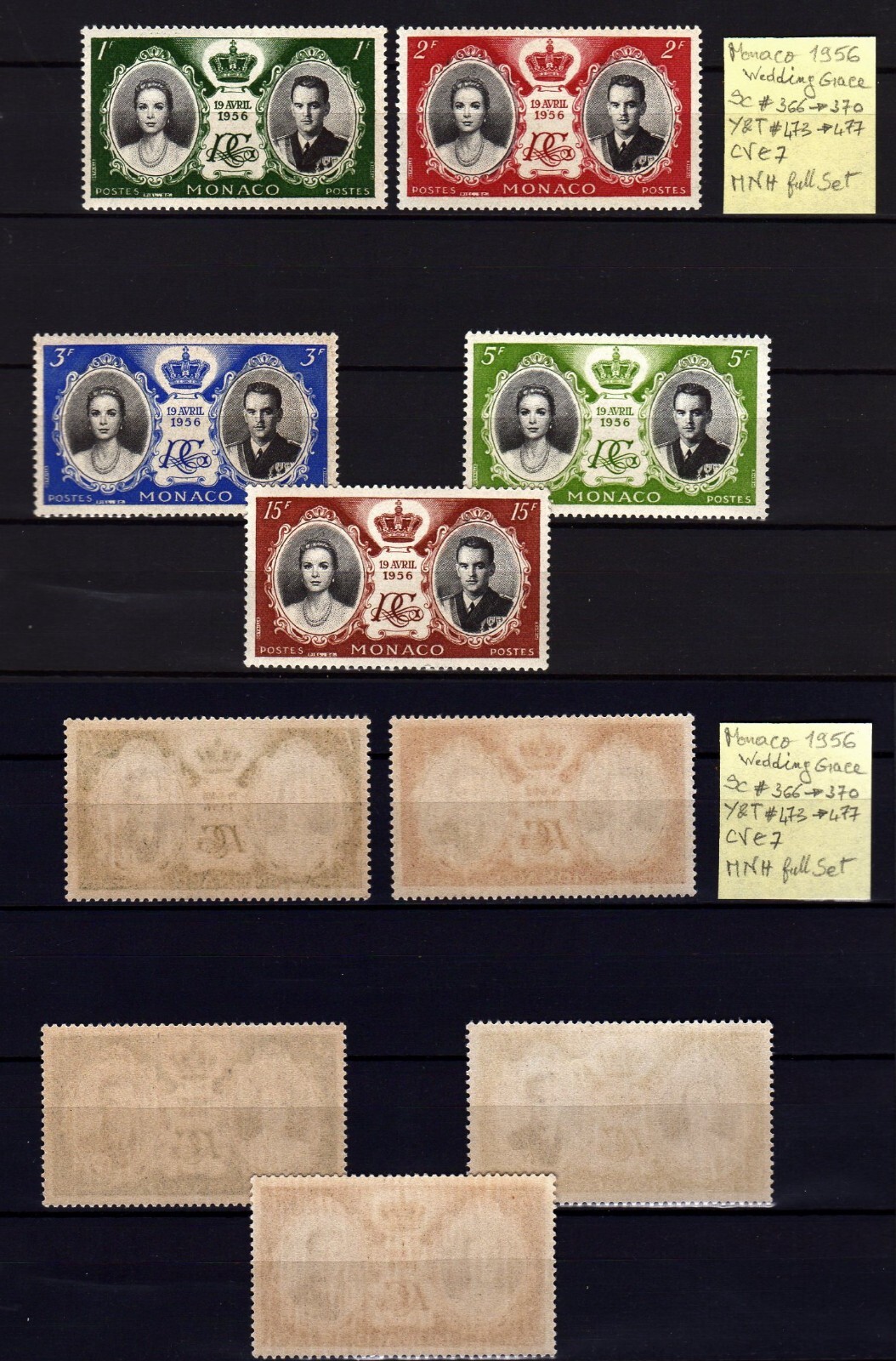 B613-MONACO 1956 GRACE WEDDING Sc#366- 370 Y&T#473- 477 Full Set MNH s