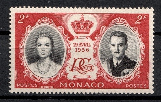 MONACO N° 474 "MARIAGE PRINCIER 1956, GRACE ET RAINIER 2 F" NEUF x TB