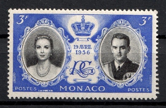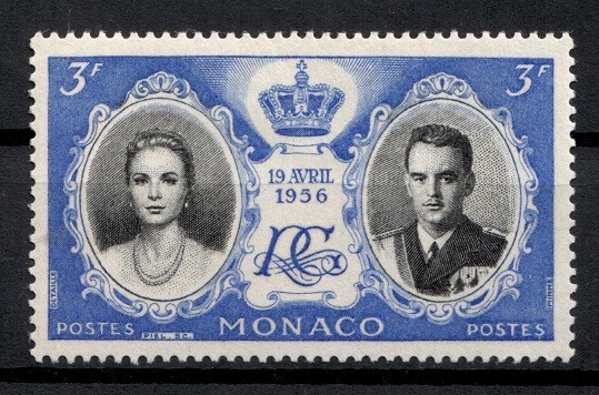 MONACO TIMBRE YVERT 475 "MARIAGE PRINCIER 1956 GRACE ET RAINIER 3F " N