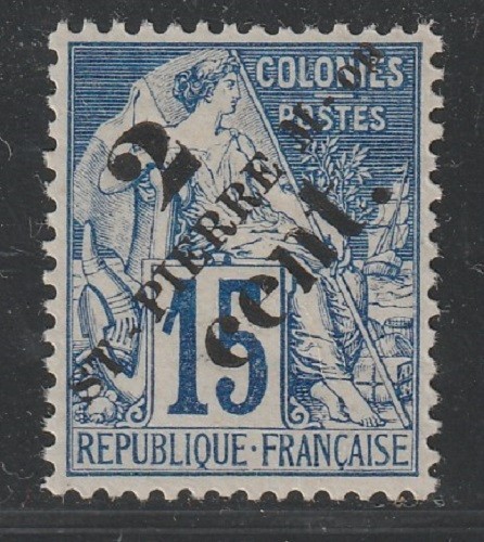 Saint Pierre et Miquelon - N°39 nsg (1891-92) 2c sur 15c