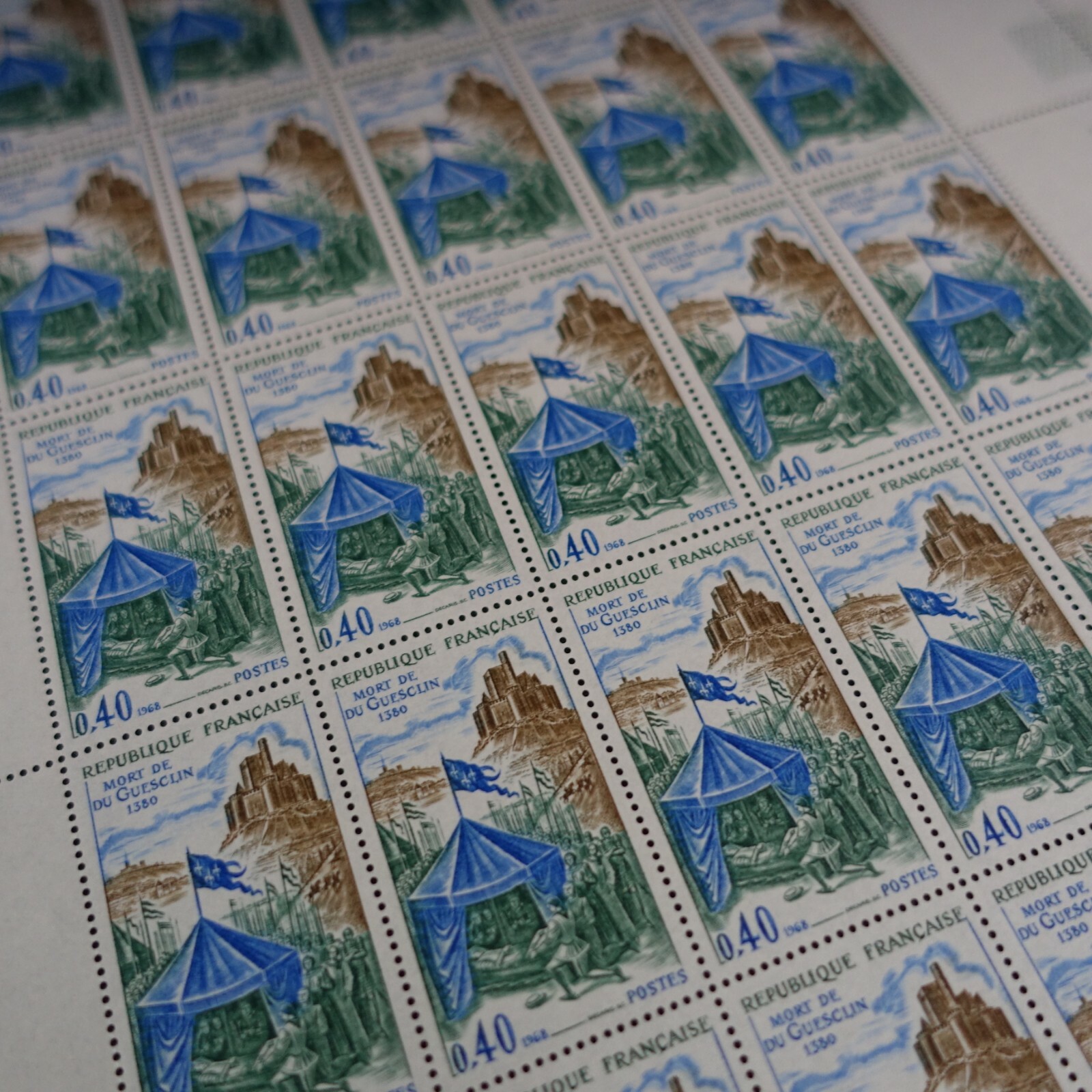 FEUILLE SHEET TIMBRE HISTOIRE DU GESCLIN LOZÈRE N°1578 x25 1968 NEUF