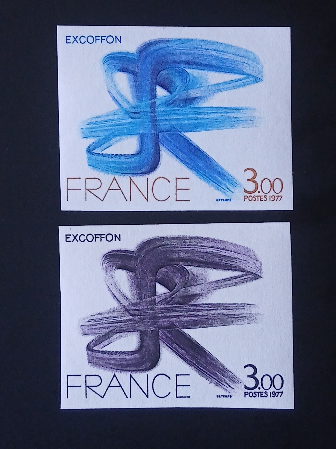 2 timbres France 1977 yt 1951 variété non dentelé et essai de coule