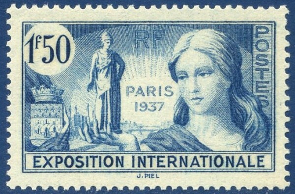 france 1937, beaux timbres yvert 336 exposition universelle