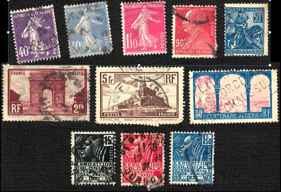 France 1927-30 Y&T n°236, 237, 238, 243, 257, 258, 260, 263, 270, 272
