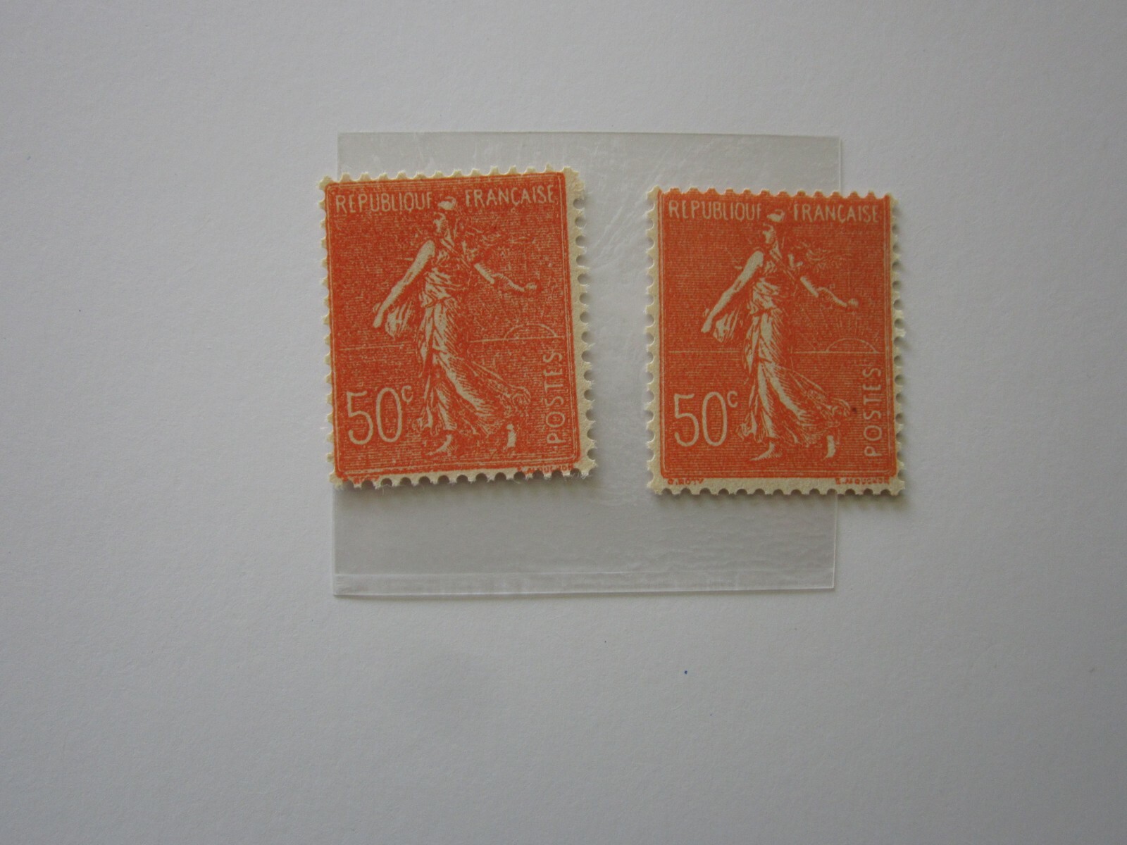 48-Paire de N°199 semeuse lignée 50c rouge, neufs 1926