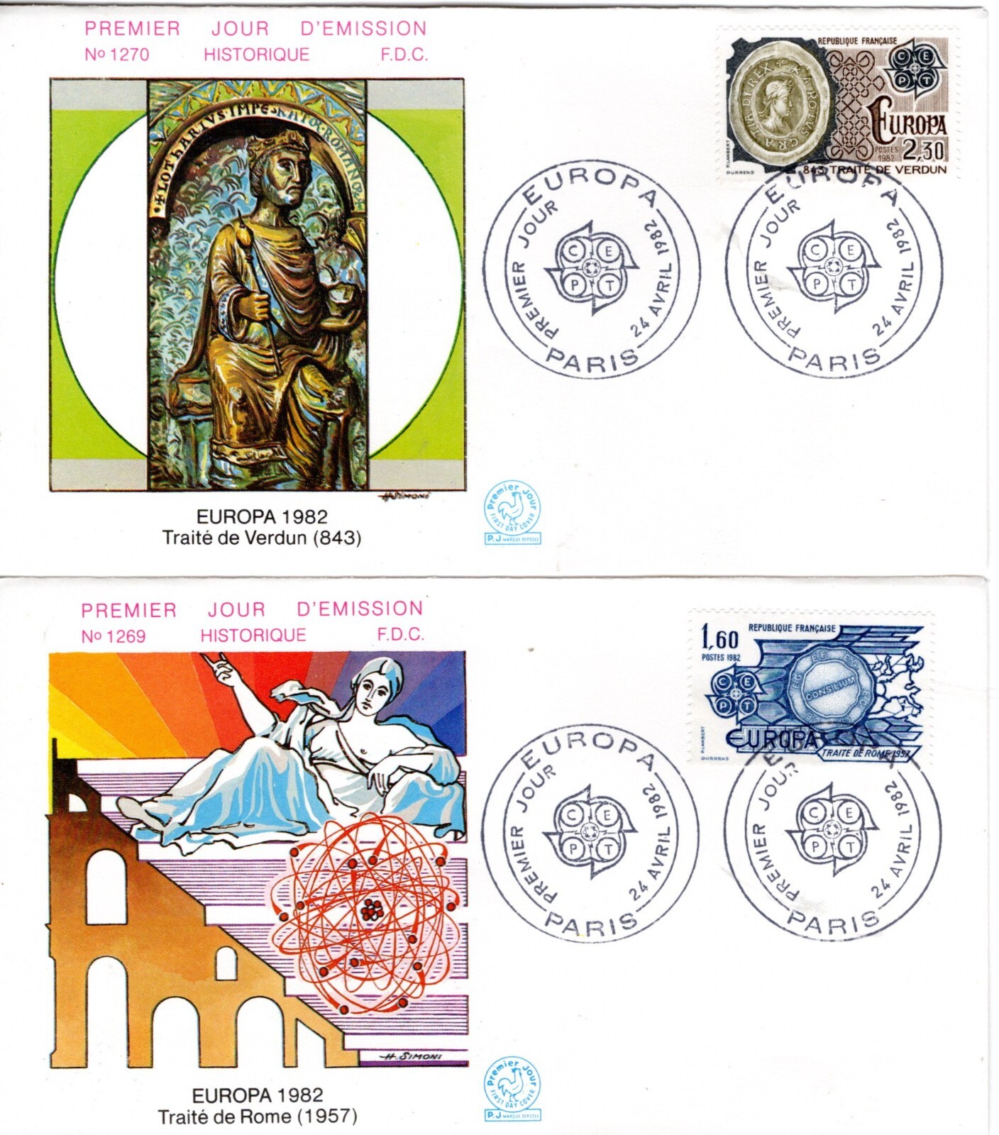 FRANCE 1982 PAIRE EUROPA LES FAITS HISTORIQUES YVERT N°