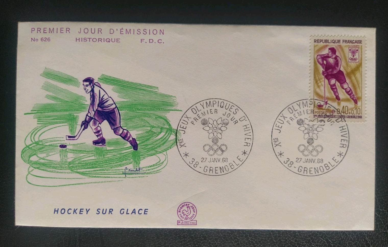 ENVELOPPE PREMIER JOUR TIMBRE JEUX OLYMPIQUES GRENOBLE FDC 1968 N°154